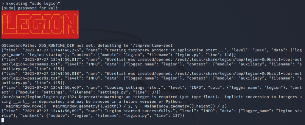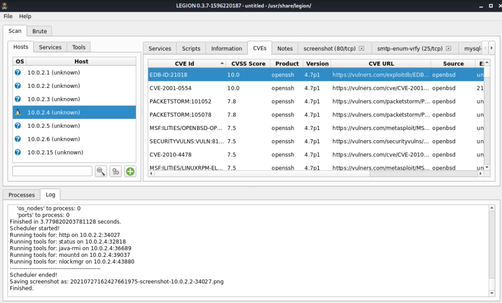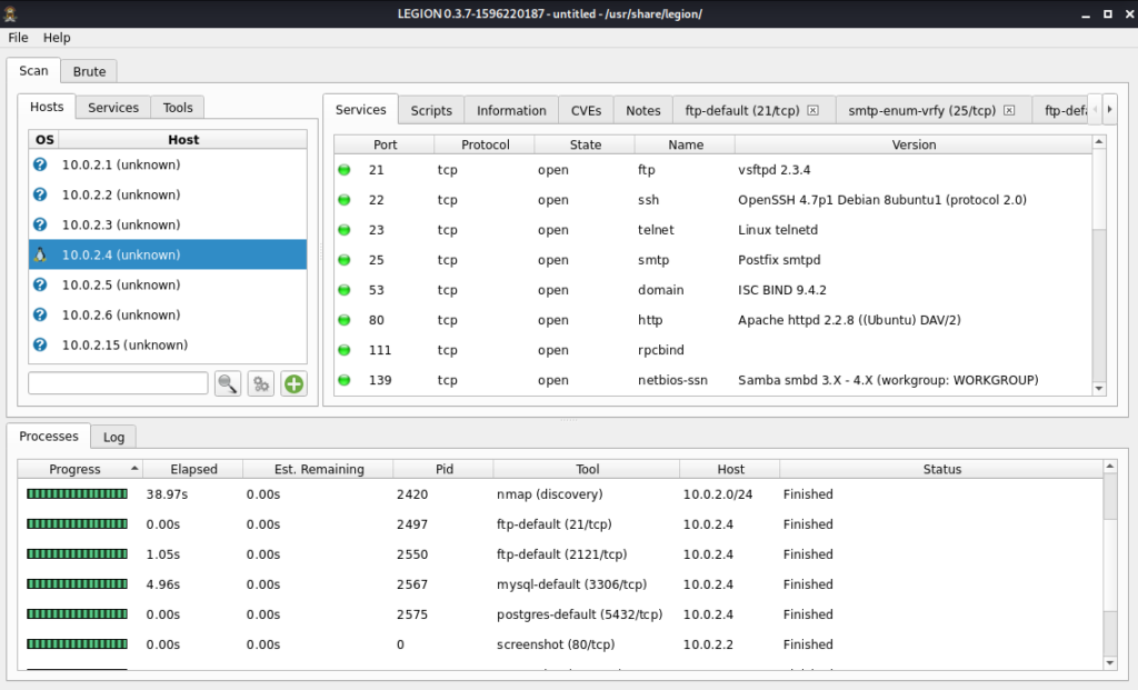 For the purposes of this article we will be using legion v0.3.7 installed on a Kali Linux 2021.2 virtual machine (IP = 10.0.2.15) running within VirtualBox 6.1. The target machines are being run as virtual machines on the same NAT Network: