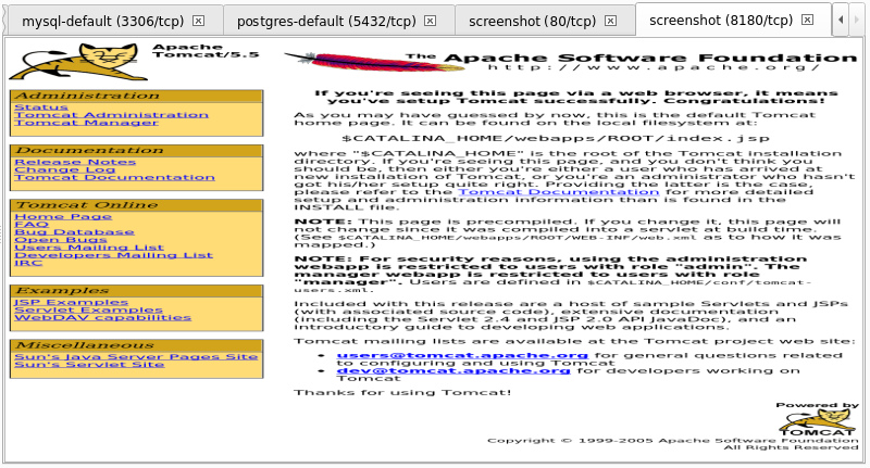 Screenshots can even be captured showing the host’s responses on certain ports e.g. ports 80 and 8180 below: